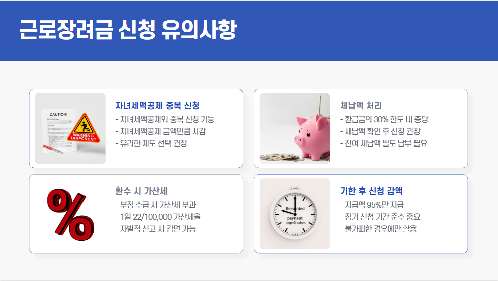 - 이미 지급된 장려금이 환수될 경우, 가산세(1일 22/100,000)가 부과될 수 있습니다.