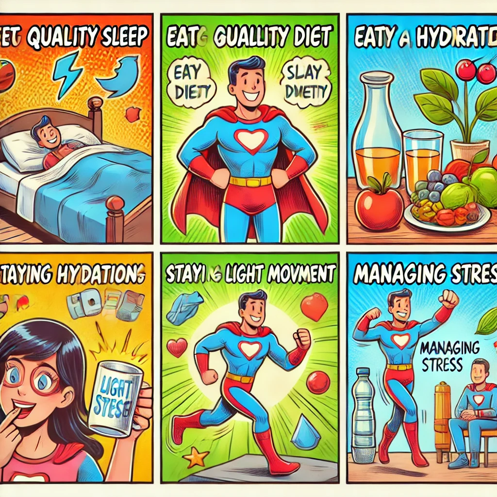 - 규칙적인 수면 패턴 유지하기 (하루 7~8시간 숙면)