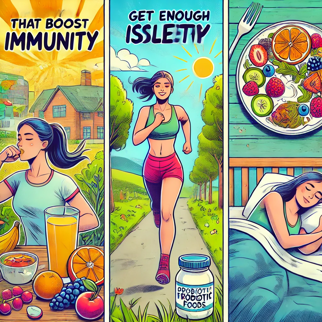 - 프로바이오틱스: 장 건강은 면역력에 중요한 영향을 미칩니다. 요거트, 김치, 된장 등 발효식품을 섭취하면 장내 유익한 균을 증가시킬 수 있습니다.