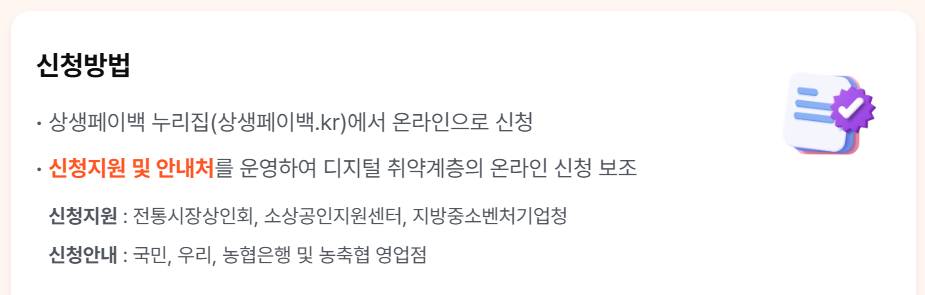 - 공식 누리집인 상생페이백 홈페이지(상생페이백.kr) 접속