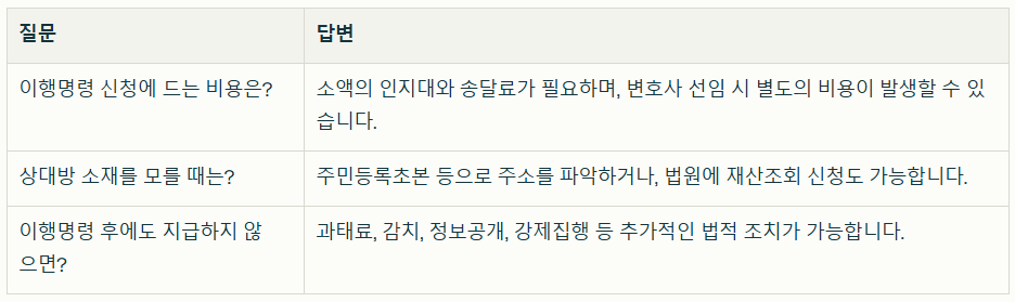 - 강제집행: 채무자의 재산에 대해 압류, 경매 등 강제집행을 신청할 수 있습니다.