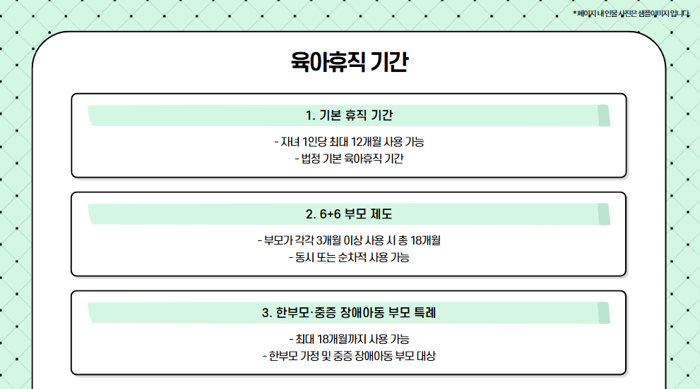 - 한부모·중증 장애아동 부모 특례: 최대 18개월까지 사용 가능