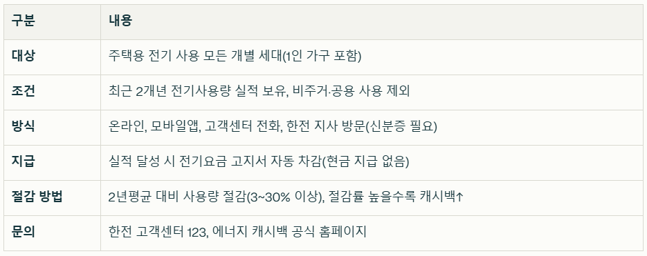 - 2025년 기준, 절감률과 절감량에 따라 차등 캐시백 지급.