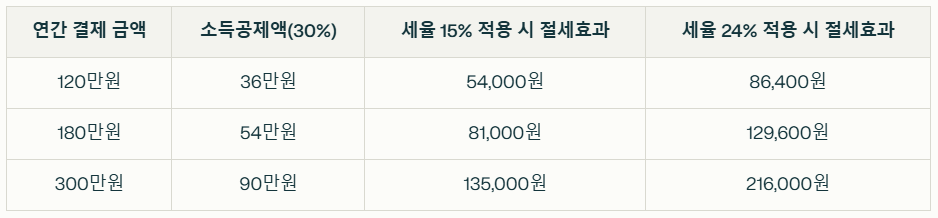 신용카드, 체크카드, 현금영수증 등 증빙 가능한 결제 수단을 사용해야 하며, 현금 결제 시 반드시 현금영수증을 발급받아야 합니다. - 연말정산 시 신청: