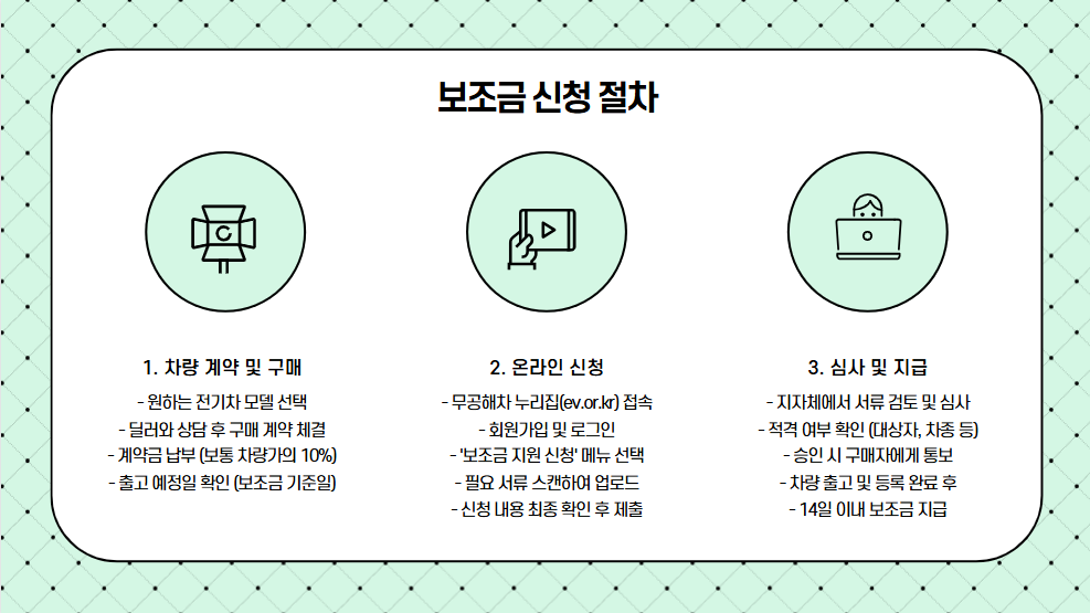 ※ 보조금은 출고일 기준으로 적용되며, 선착순 마감되니 예산 소진 전에 신청해야 해요.