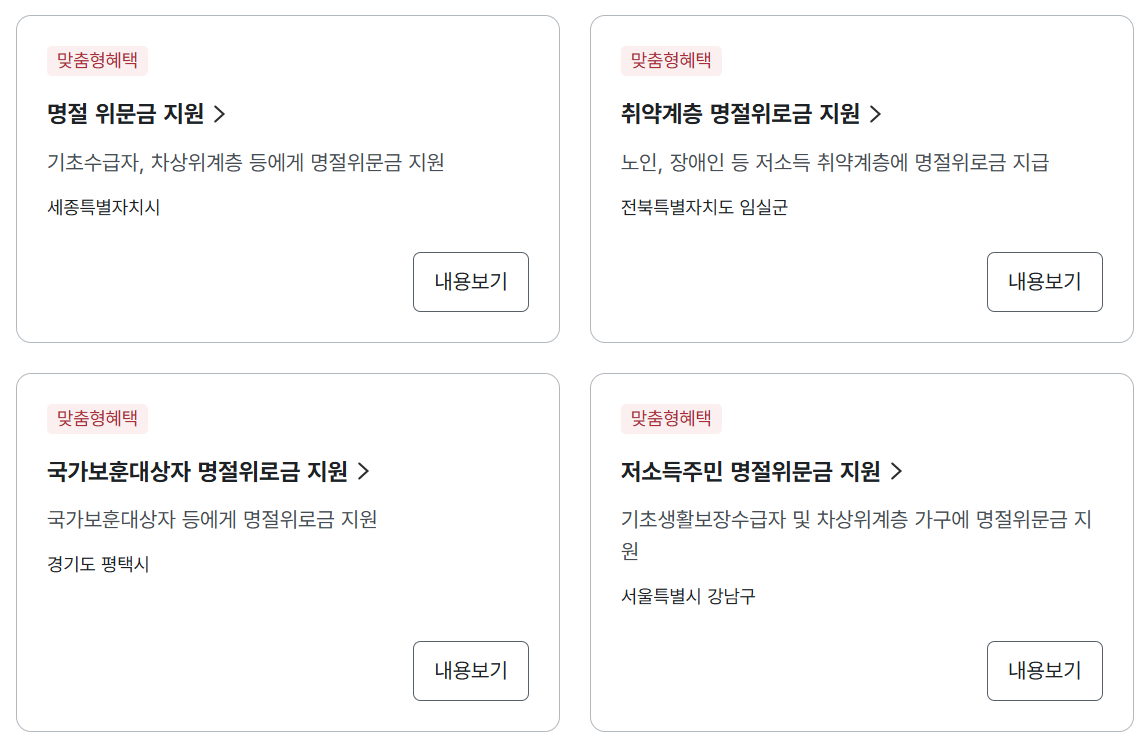 - 지원 내용: 추석 명절 위로금 지급 (현금 또는 지역화폐 형태)